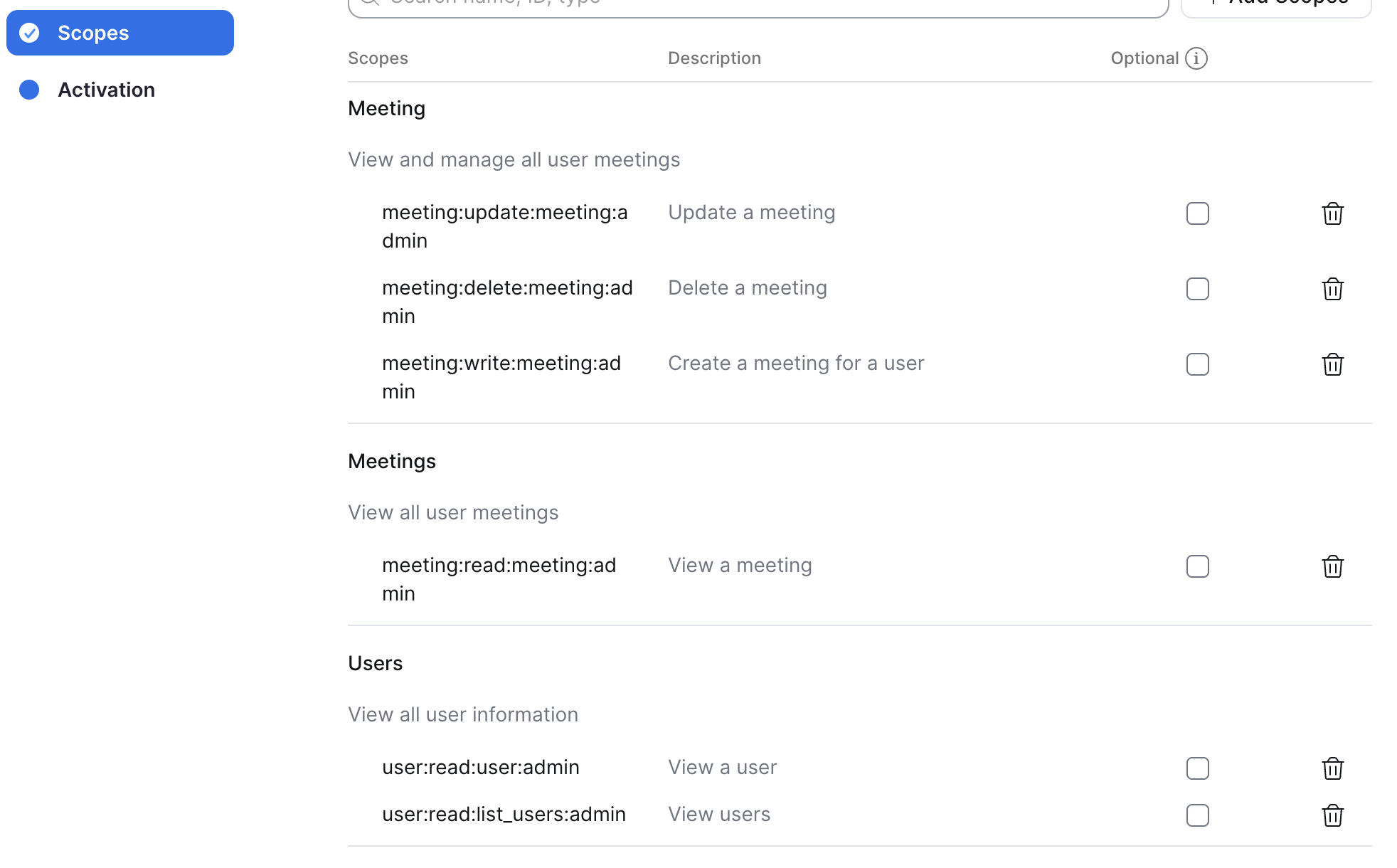 - Delete a meeting (meeting:delete:meeting:admin)