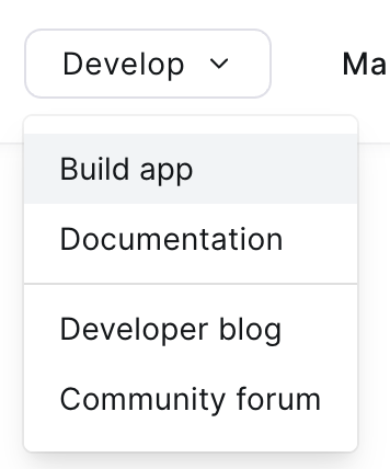 Így eljutunk a Zoom piacterére, ahol különböző alkalmazásokat párosíthatunk a Zoom fiókunkhoz. Ezek közül nem lesz szükségünk egyikre sem, saját alkalmazást fogunk létrehozni a fejlécben található „Develop” legördülő menü „Build App” menüpontjára kattintva: