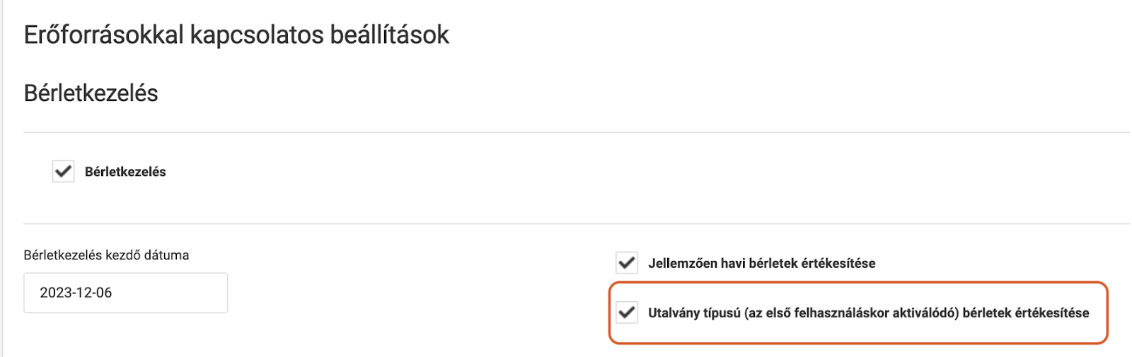 Ehhez az “Erőforrásaim”, “Beállítások” menü “Bérletkezelés” részén belül be kell állítani az “Utalvány típusú (az első felhasználáskor aktiválódó) bérletek értékesítése” gombot és elmenteni a beállításokat.