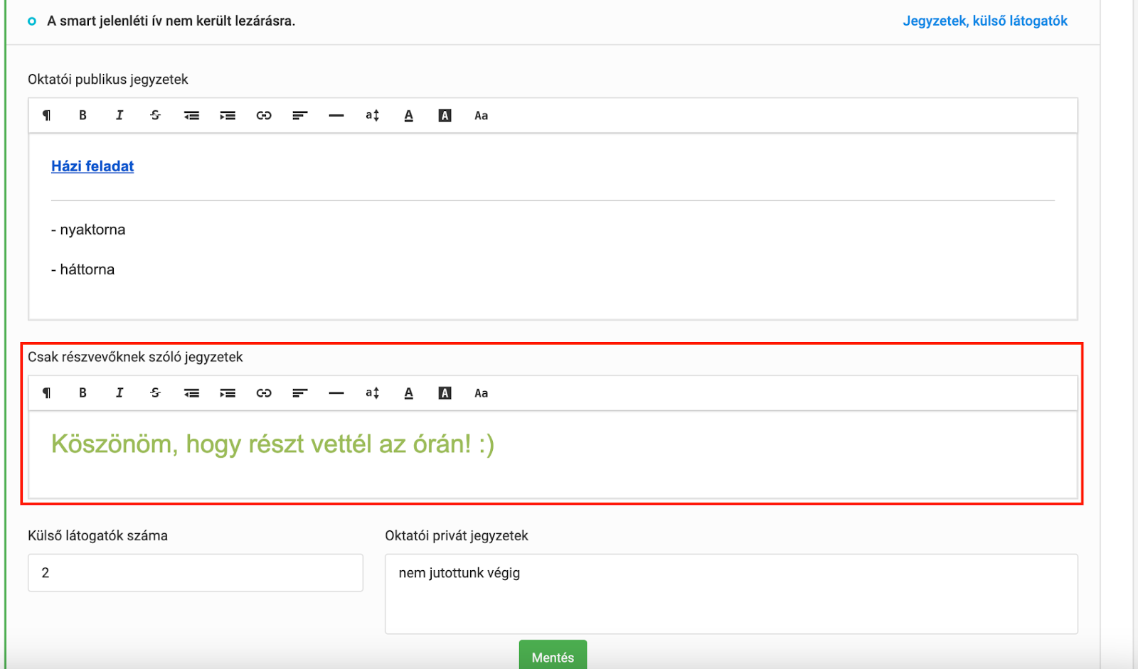 Van lehetőség csak az órán részt vett vendégek számára is jegyzeteket készíteni.