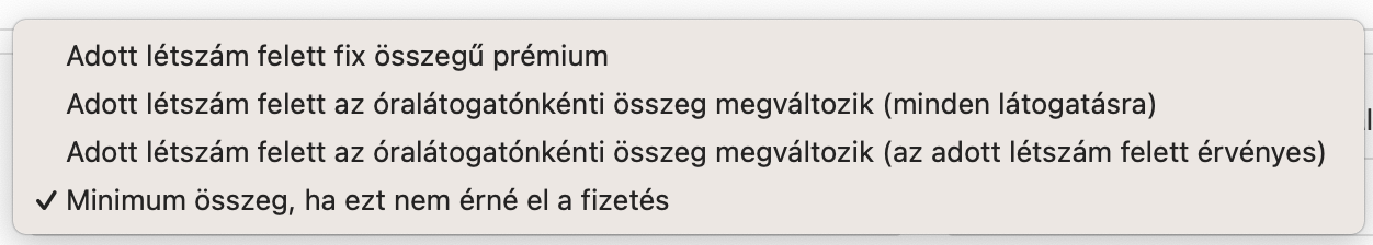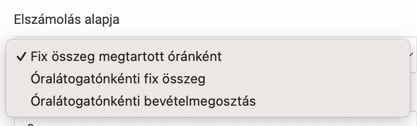 - Az elszámolási rendszer lehetővé teszi minimális óradíj beállítását is, amely garantált bevételt nyújt az oktatóknak, függetlenül a részvételi aránytól.